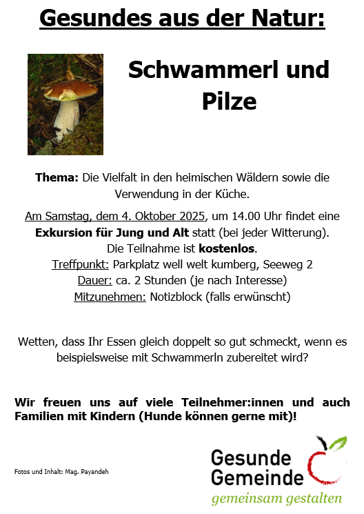 Auf Ihr Interesse und auf zahlreiche Teilnahme freuen sich die Biologinnen und die Marktgemeinde Kumberg.