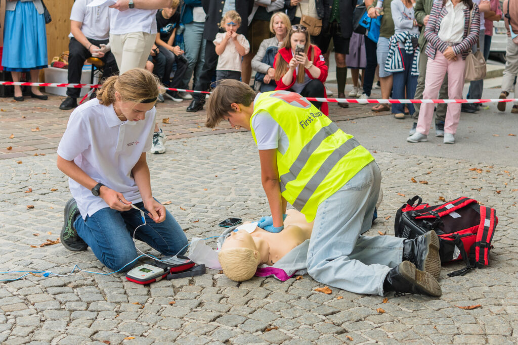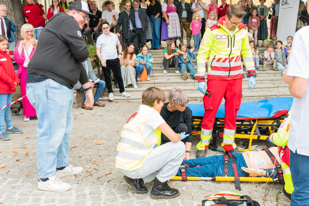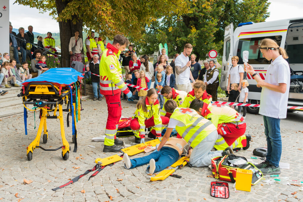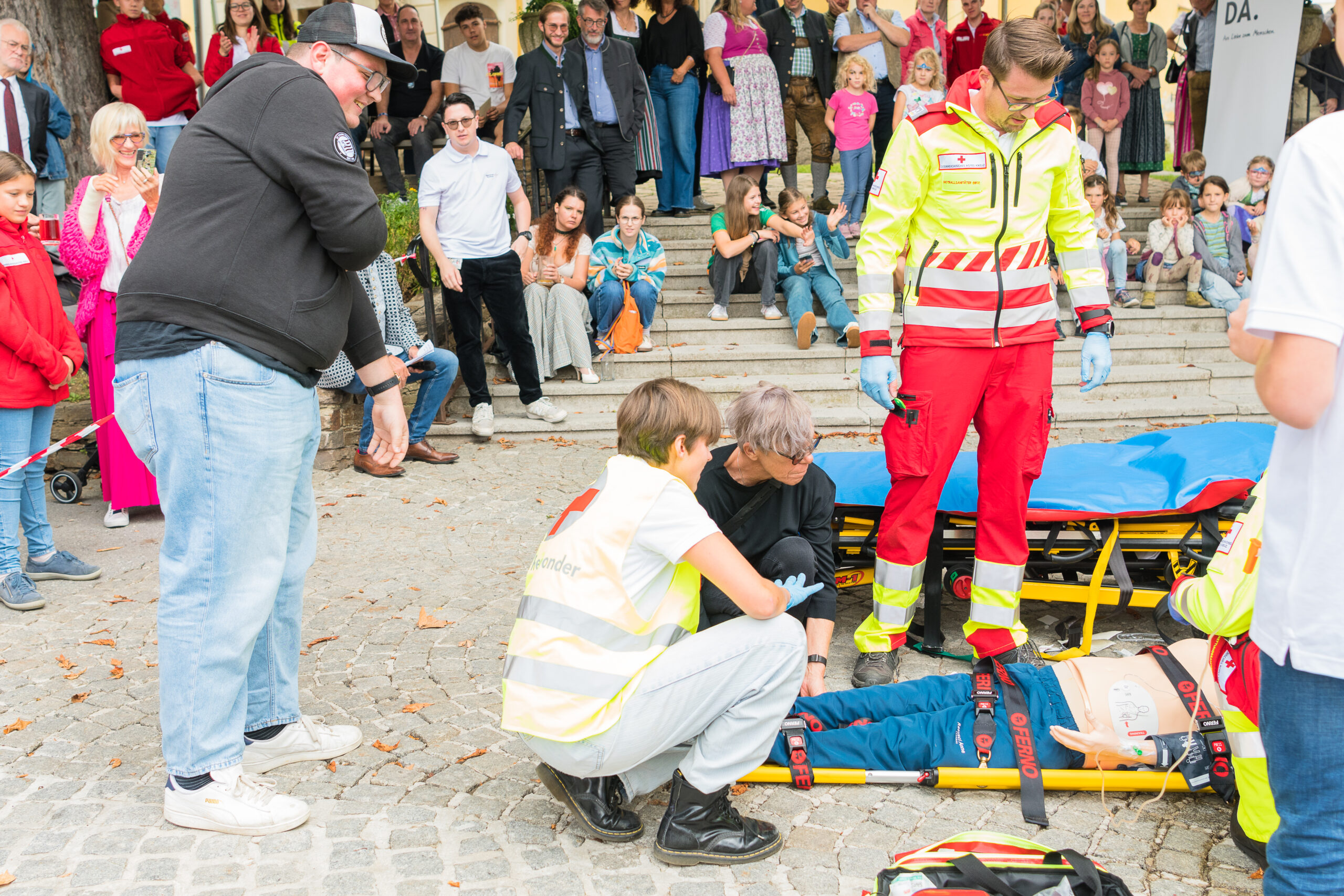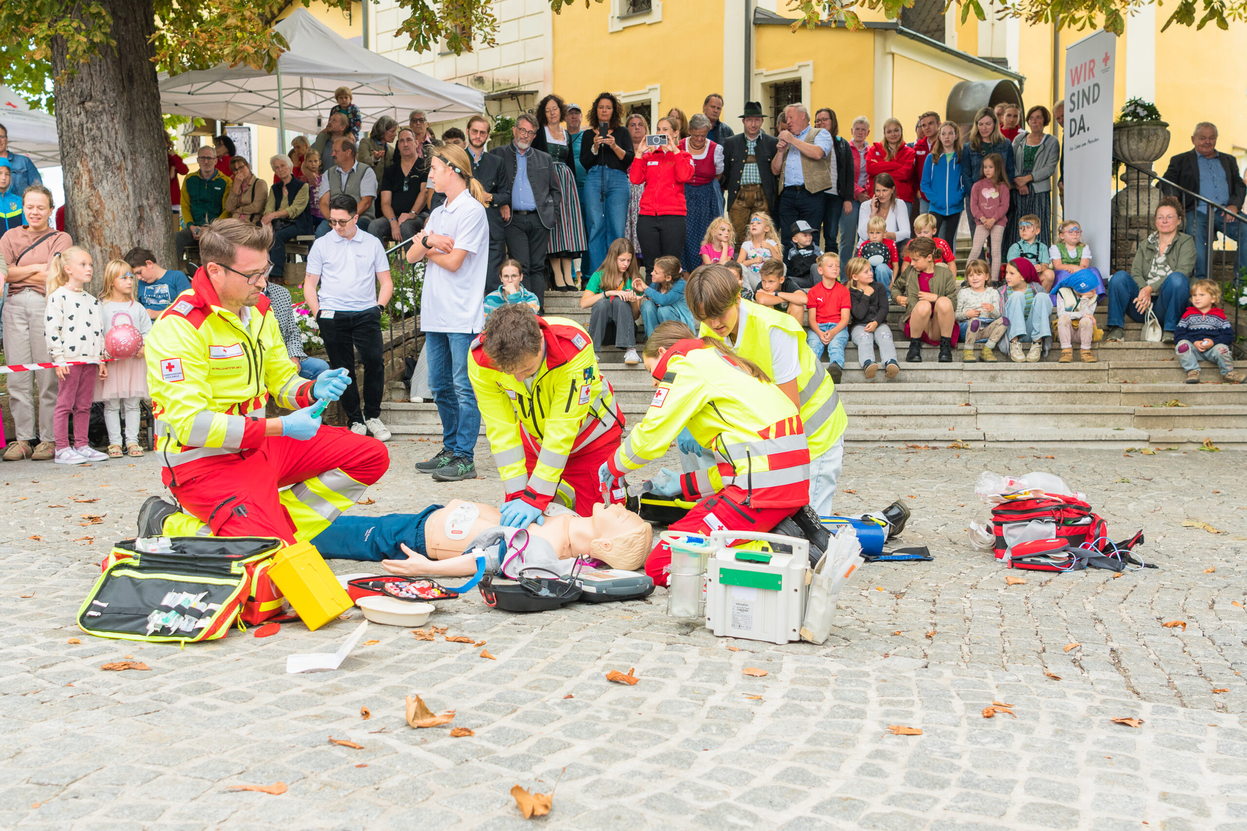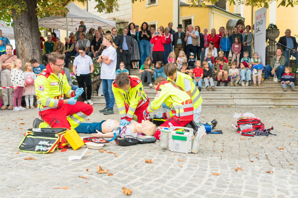 Ein besonderes Augenmerk galt in diesem Jahr der Ortsstelle des Roten Kreuzes Kumberg, die sich im Rahmen des Festes der Bevölkerung präsentierte. Um 13:00 Uhr begeisterte eine beeindruckende Schauübung der Einsatzkräfte sowie die Präsentation der Einsatzfahrzeuge zahlreiche Besucherinnen und Besucher, die einen spannenden Einblick in die Arbeit des Roten Kreuzes erhielten.