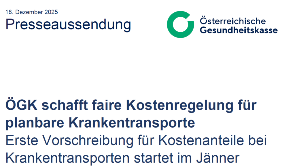 Mit Jänner 2026 werden moderate Kostenanteile für planbare Krankentransporte, die mit 1. Juli