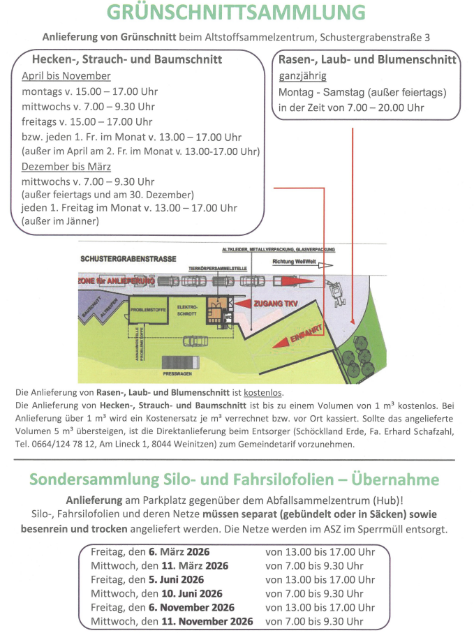 Wurzelstöcke dürfen nicht im ASZ angeliefert werden, diese sind direkt bei Schöcklland Erde, Fa. Erhard Schafzahl, Am Lineck 1, 8044 Weinitzen anzuliefern. Tel. 0664/124 78 12