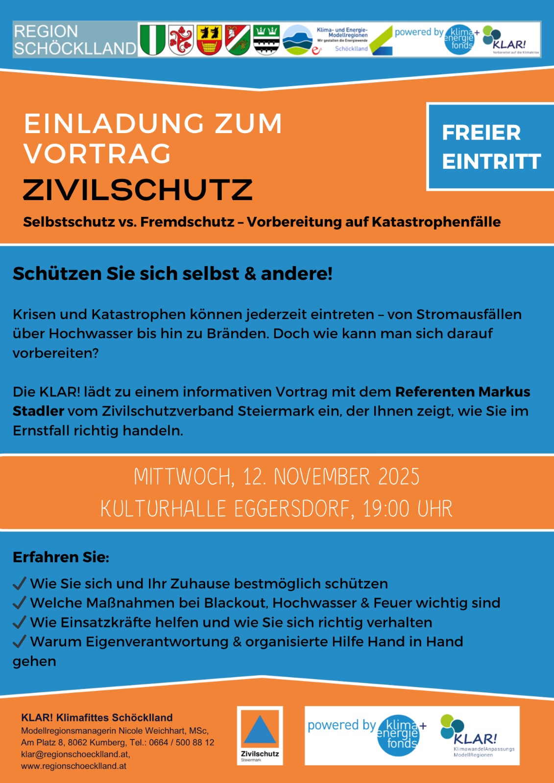 Die KLAR! lädt zum Vortrag am Mittwoch, dem 12. November 2025, um 19.00 Uhr in die Kulturhalle Eggersdorf ein.